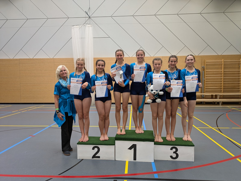 Bei den Mannschaftswettkämpfen Turn 10 in Jetzendorf im eigenen Turngau Donau-Ilm startete der TSV Elsendorf mit 3 Teams in 3 verschiedenen Altersklassen . Es gab keine Gerätewahl. Am Boden, Reck/Stufenbarren, Sprung und Schwebebalken musste geturnt werden. Die Wettkampfklasse richtete sich nach der ältesten Turnerin. So starteten 3 Mädchen (Sophia Huber, Lena Reichl, Emma Brandl) bei den 12 Jährigen mit der 7 jährigen Leila Biskup als 4. Turnerin. Die Wettkampfneulinge meisterten ihren Einstand gut, hatten zwar großen Abstand auf Platz 1, freuten sich aber umso mehr über Stockerlplatz 2. Beste Turnerin war hier Sophia Huber mit 57,5 Punkten. In der Wettkampfklasse 13 starteten Magda Sedlmaier (13), Anja Baumann (12), Emelie Schäfer (12) und Heidi Schranner (8 Jahre). In sehr zuverlässigen Übungen unter 6 Mannschaften gabs hier Platz 3 zu feiern, der durch den Sieg des nicht Gau Gastvereins Töging eigentlich Platz 2 war. Beste Turnerin des TSV war Anja Baumann mit 65,25 Punkten. In der Alterklasse 17 und älter kämpfte die Mannschaft um Maria Engelhard (17) mit Lea Fischbäck (13), Vlera Gashi (12) und Veronika Senger (12) um den Sieg. Und das schafften sie auch mit hervorragenden Leistungen an allen Geräten und einem 25 Punkte Vorsprung vor Platz 2 lagen die Emotionen am Siegertrepperl blank. Beste Turnerin in dieser Wettkampfklasse gesamt war Lea Fischbäck mit ausgezeichneten 70 Punkten vor Vereinskollegin Maria Engelhard (beide TSV Elsendorf) mit 68,25 Punkten.